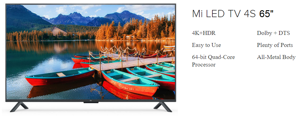 (Global English) XiaoMi LED Android Smart TV 4S 65" [4K Ultra HD Display | Google Service | Google Play | Google Assistant | Youtube]