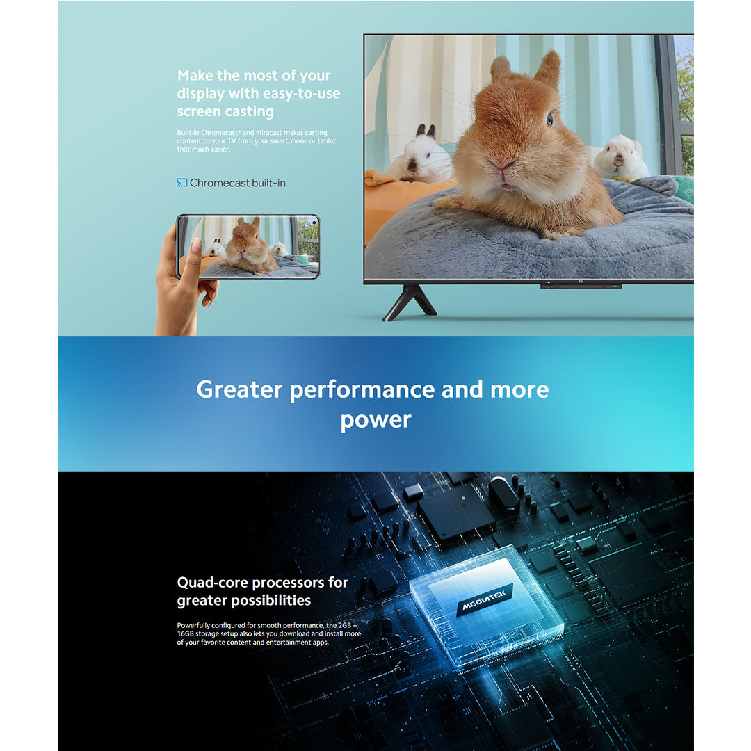 XIAOMI 43" 4K UHD Andriod TV MI 43" TV P1 Series | Google Assistant | Smart Home Control Hub | Dolby Audio | Quad-Core Processor | Bluetooth 4.2 | Android 9.0 | USB | HDMI | Wi-Fi 2.4GHz | Android TV