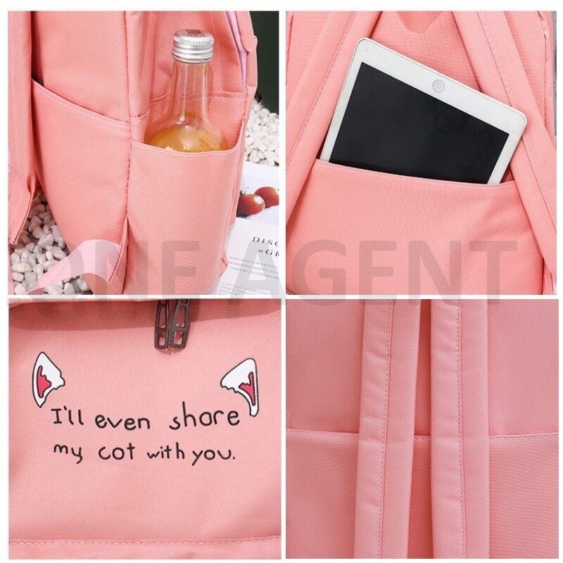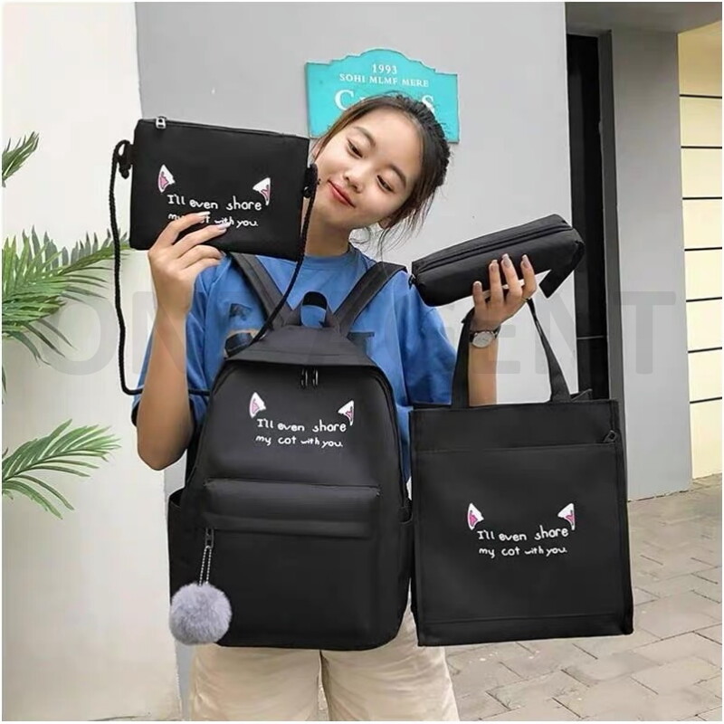 4 IN 1 Backpack Set Canvas School Student Galas Sekolah Bag Women Handbag Sling Bag Tote Beg Pen Case Travel SETBG004